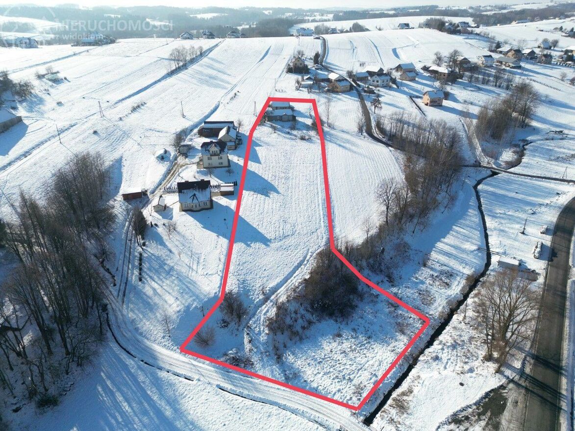 Dom znajduje się na działce o powierzchni 71 arów, usytuowanej na urokliwym wzniesieniu z przepięknym widokiem na okoliczne pola, łąki i pagórki Pogórza Ciężkowickiego.