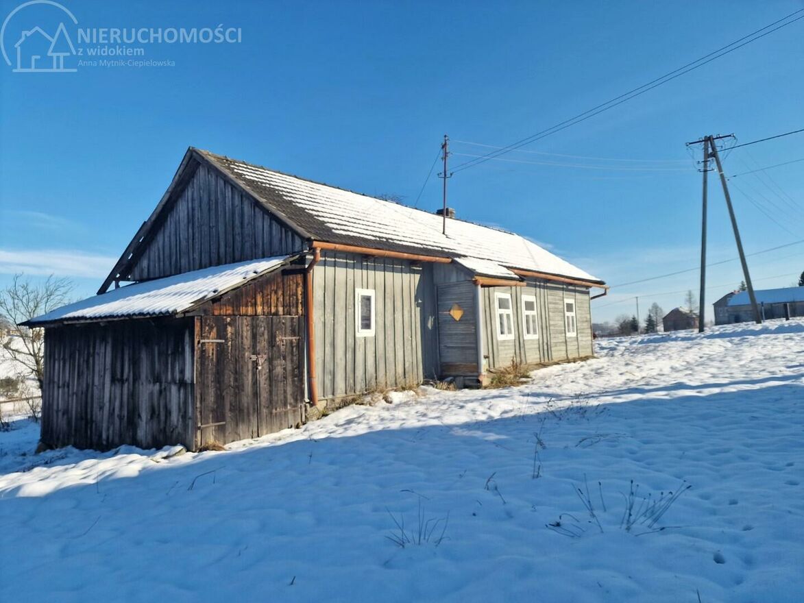 Drewniany budynek mieszkalny o powierzchni ok. 85 m, kryty dachówką, przeznaczony do remontu.